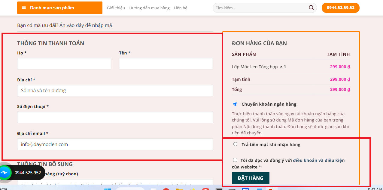 Quý khách có thể đặt hàng trực tuyến ở website https://daymoclen.com/ thông qua các bước đặt hàng cơ bản như sau: